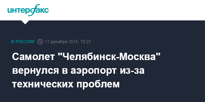 Самолет "Челябинск-Москва" вернулся в аэропорт из-за технических проблем