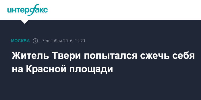 Москва. 17 декабря. INTERFAX.RU - Мужчина попытался совершить самосожжение на Красной площади, сообщил в четверг "Интерфаксу" источник в правоохранительных органах.