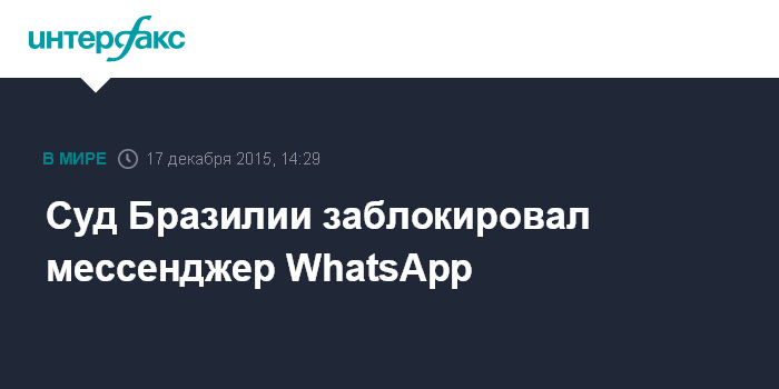 Москва. 17 декабря. INTERFAX.RU - Власти Бразилии заблокировали доступ к приложению WhatsApp, позволяющему обмениваться сообщениями на смартфонах.