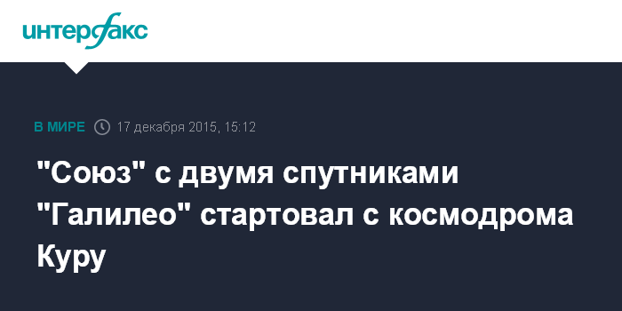 Москва. 17 декабря. INTERFAX.RU - С космодрома Куру (французская Гвиана) в 14:51 по московскому времени стартовала ракета-носитель "Союз-СТ-Б", которая должна вывести на орбиту два европейских навигационных аппарата "Галилео", сообщили "Интерфаксу" в компании Arianespace.
