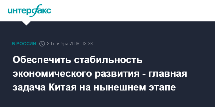 Обеспечить стабильность экономического развития - главная задача Китая на нынешнем этапе