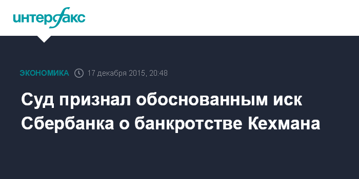 Суд признал обоснованным иск Сбербанка о банкротстве Кехмана
