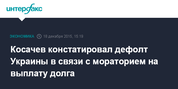 "Сегодня, примерно час назад, украинское правительство объявило о моратории на выплату так называемого российского долга - 3 млрд долларов, что и по сути, и по международному праву, включая регламентацию Международного валютного фонда, фактически является объявлением дефолта Украины", - сказал Косачев на встрече с французскими парламентариями в Москве в пятницу.