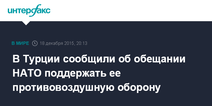 В Турции сообщили об обещании НАТО поддержать ее противовоздушную оборону