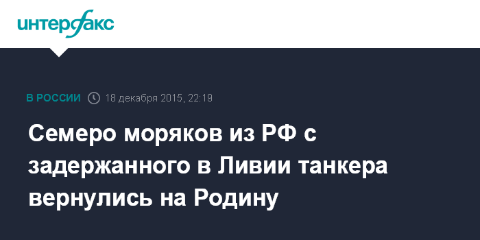 Москва. 18 декабря. INTERFAX.RU - В пятницу, благодаря предпринятым российской стороной усилиям, в том числе действенной помощи руководства Чечни, на Родину вернулись семь членов экипажа российского танкера "Механик Чеботарев", задержанного в Ливии 16 сентября, сообщил МИД РФ.