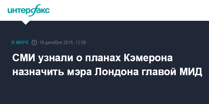 СМИ узнали о планах Кэмерона назначить мэра Лондона главой МИД