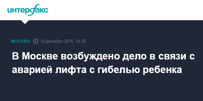 В Москве возбуждено дело в связи с аварией лифта с гибелью ребенка