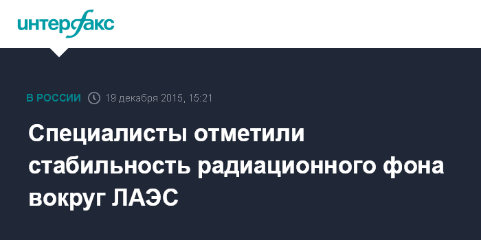 Москва. 19 декабря. INTERFAX.RU - Радиационный фон в городе Сосновый Бор Ленинградской области, где расположена Ленинградская АЭС (ЛАЭС), в субботу продолжает оставаться в пределах естественных фоновых значений.
