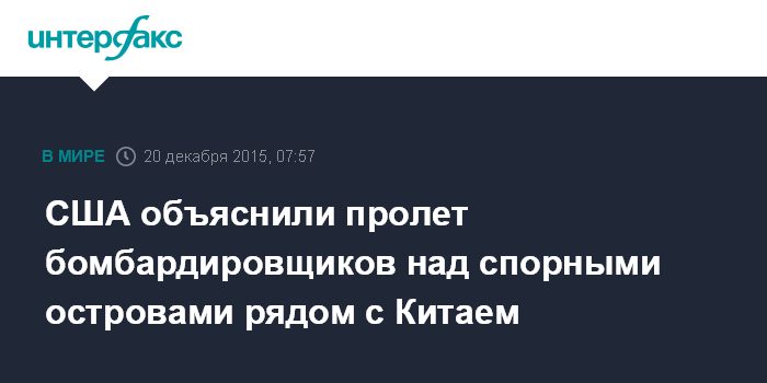 Москва. 20 декабря. INTERFAX.RU - США заявили, что боамбардировщики Б-52 не имели намерения пролетать над спорными островами Спратли в Южно-китайском море, сообщило агентство Associated Press.