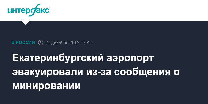 Москва. 20 декабря. INTERFAX.RU - Пассажиров и персонал аэропорта "Кольцово" эвакуировали из-за сообщения о заложенном взрывном устройстве, сообщили агентству "Интерфакс" в пресс-службе аэропорта.