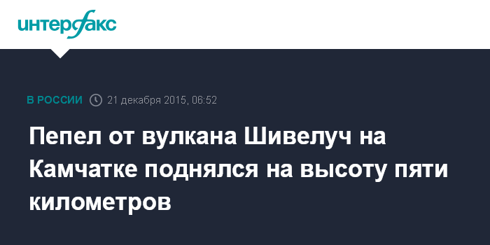 Москва. 21 декабря. INTERFAX.RU - Пепел от извергающегося на Камчатке вулкана Шивелуч поднялся на высоту до 5 км над уровнем моря в понедельник, сообщает Камчатская группа реагирования на вулканические извержения (KVERT) Института вулканологии и сейсмологии ДВО РАН.