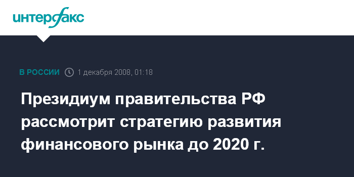 Президиум правительства РФ рассмотрит стратегию развития финансового рынка до 2020 г.