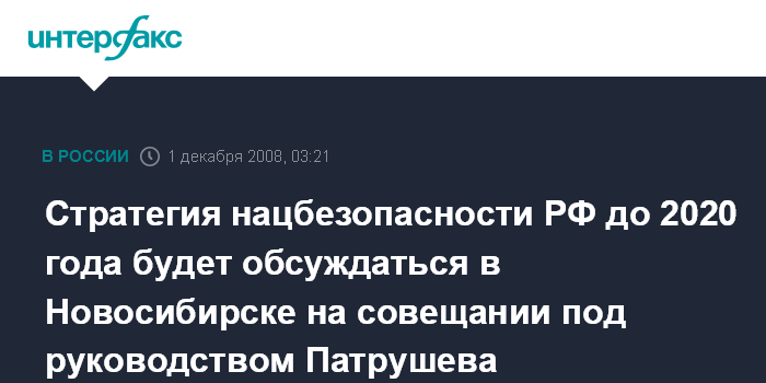 Стратегия нацбезопасности РФ до 2020 года будет обсуждаться в Новосибирске на совещании под руководством Патрушева