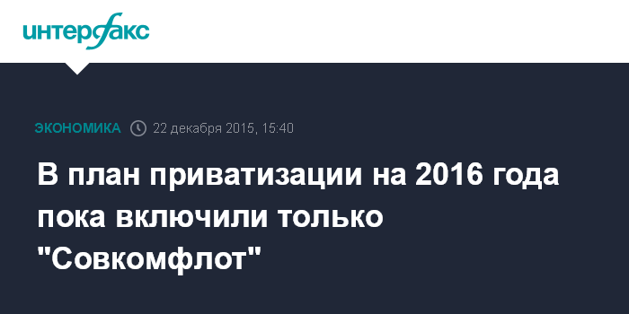 При этом она отметила, что приоритетов в продаже того или иного актива нет, а в плане приватизации на 2016 год пока стоит только "Совкомфлот", что не означает, что другие активы не будут продаваться.