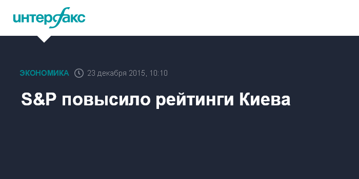 Москва. 23 декабря. INTERFAX.RU – Международное рейтинговое агентство Standard & Poor's повысило долгосрочные рейтинги Киева в иностранной и национальной валюте до "CCC+" с "D", сообщается в пресс-релизе агентства.