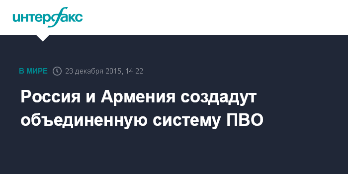 Москва. 23 декабря. INTERFAX.RU - Соглашение между Россией и Арменией о создании Объединенной региональной системы ПВО в кавказском регионе коллективной безопасности подписано в Москве в среду.