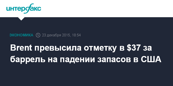 Brent превысила отметку в $37 за баррель на падении запасов в США