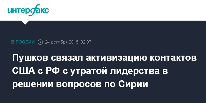 Москва. 24 декабря. INTERFAX.RU - Председатель комитета Госдума по международным делам Алексей Пушков считает, что США были вынуждены активизировать свои контакты с Россией после утраты лидерства в решение сирийского кризиса.