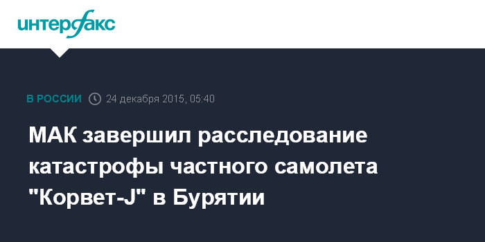 МАК завершил расследование катастрофы частного самолета "Корвет-J" в Бурятии