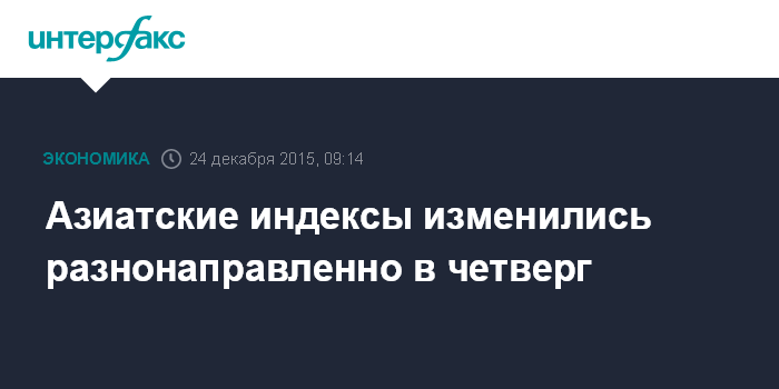 Москва. 24 декабря. INTERFAX.RU - Азиатские фондовые индексы изменяются разнонаправленно в четверг, сообщает агентство Bloomberg.