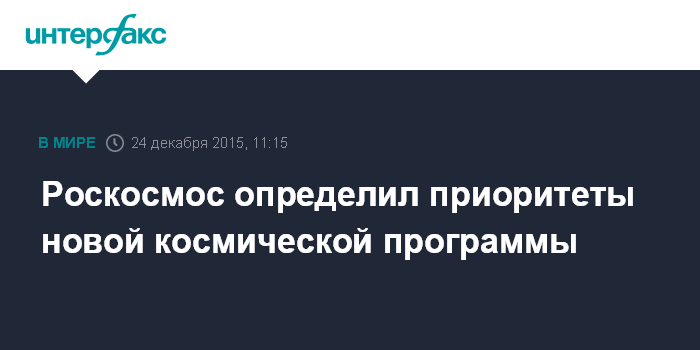 Москва. 24 декабря. INTERFAX.RU - Роскосмос расставил приоритеты в новой космической программе.