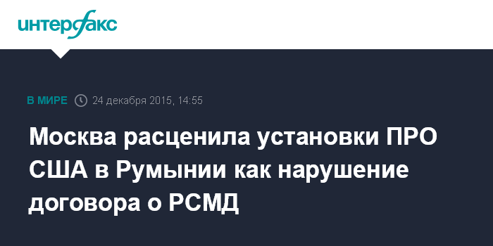 Москва расценила установки ПРО США в Румынии как нарушение договора о РСМД