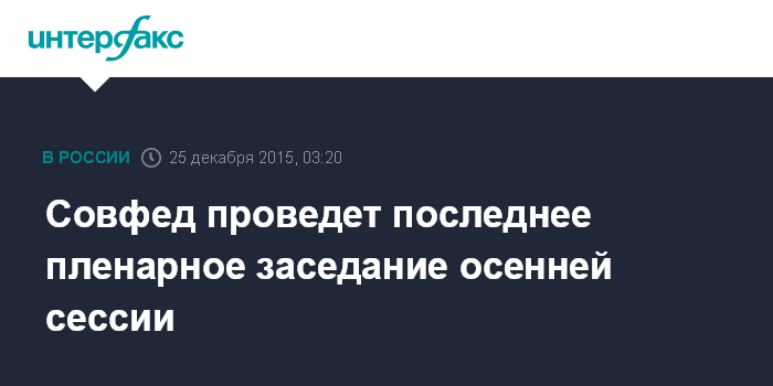 Москва. 25 декабря. INTERFAX.RU - В пятницу Совет Федерации проведет последнее пленарное заседание осенней сессии, в повестке работы - 99 вопросов.