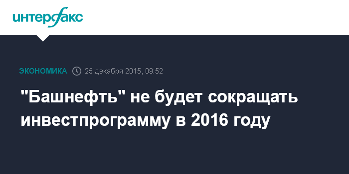 Москва. 25 декабря. INTERFAX.RU - АНК "Башнефть" не планирует в 2016 году сокращать инвестиции по сравнению с 2015 годом, сообщил президент компании Александр Корсик в пятницу.