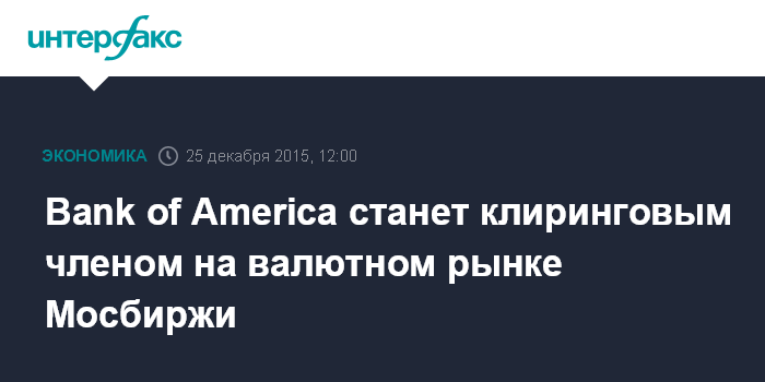 Bank of America станет первым глобальным банком - нерезидентом, получившим статус общего участника клиринга на валютном рынке Московской биржи.