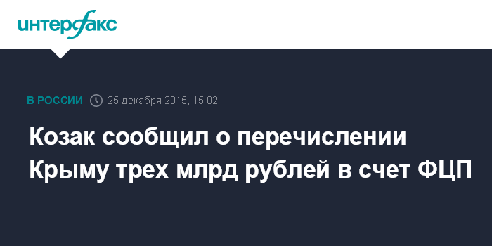 Москва. 25 декабря. INTERFAX.RU - Часть средств федеральной целевой программы развития Крыма уже перечислена в регион и осваивается, заявил вице-премьер РФ Дмитрий Козак.