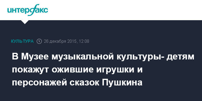В Музее музыкальной культуры детям покажут ожившие игрушки и персонажей сказок Пушкина