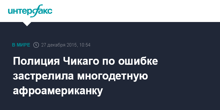 Москва. 27 декабря. INTERFAX.RU - Полиция Чикаго застрелила 19-летнего афроамериканца и 55-летнюю чернокожую женщину - мать пятерых детей.