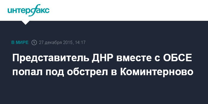 Представитель ДНР вместе с ОБСЕ попал под обстрел в Коминтерново