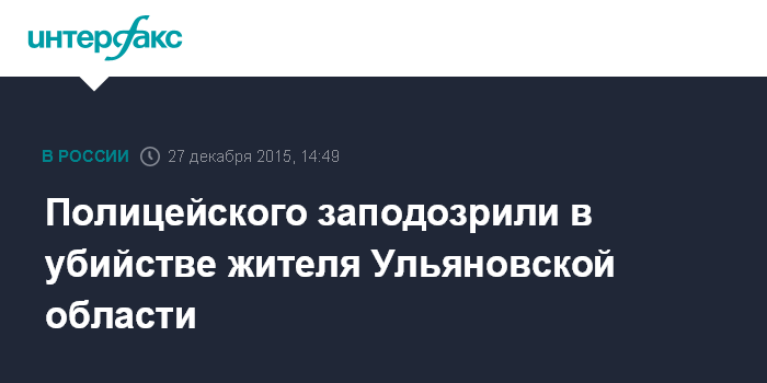 Москва. 27 декабря. INTERFAX.RU - В Ульяновской области участкового уполномоченного полиции подозревают в убийстве 42-летнего местного жителя, сообщает Следственный комитет России.