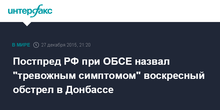 Москва. 27 декабря. INTERFAX.RU - Обстрел российских журналистов в Донбассе говорит о нежелании Киева выполнять минские договорённости, заявил постпред РФ при ОБСЕ Александр Лукашевич.