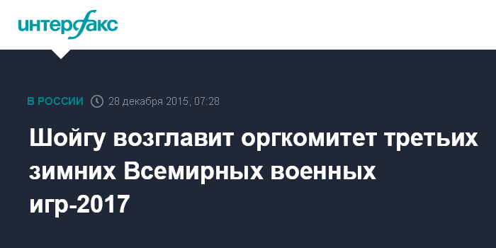 Шойгу возглавит оргкомитет третьих зимних Всемирных военных игр-2017