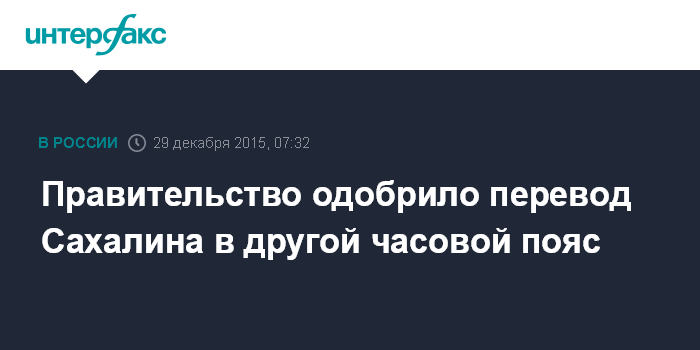 Москва. 29 декабря. INTERFAX.RU - Правкомиссия РФ одобрила законопроект, которым предлагается отнести Сахалинскую область к 10-часовой зоне - МСК+8, сообщает во вторник пресс-служба правительства Сахалинской области.