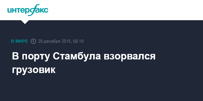 Москва. 29 декабря. INTERFAX.RU - На стоянке стамбульского порта Хайдарпаша в ночь на вторник взорвался грузовик, сообщила газета Milliyet.
