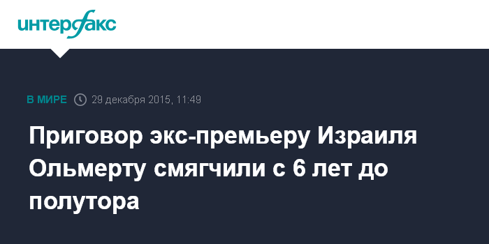 Приговор экс-премьеру Израиля Ольмерту смягчили с 6 лет до полутора
