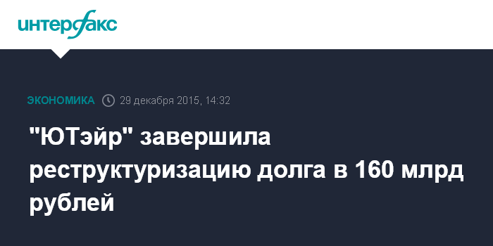 "ЮТэйр" завершила реструктуризацию долга в 160 млрд рублей