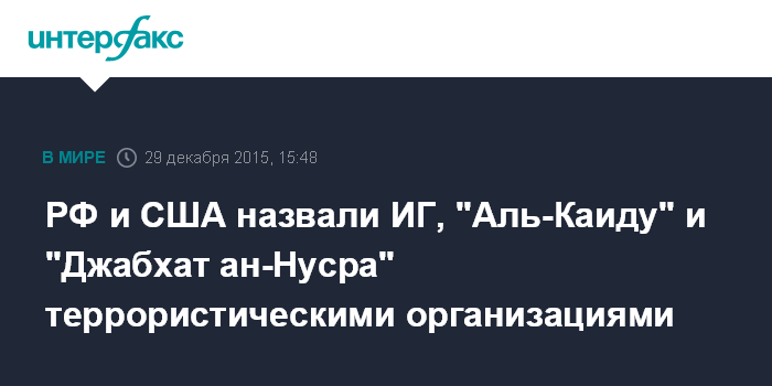 РФ и США назвали ИГ, "Аль-Каиду" и "Джабхат ан-Нусра" террористическими организациями