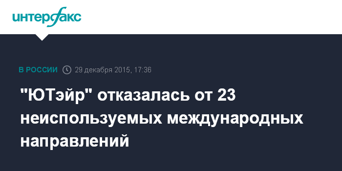 "ЮТэйр" отказалась от 23 неиспользуемых международных направлений