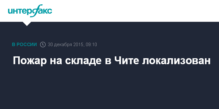 Москва. 30 декабря. INTERFAX.RU - Читинские пожарные локализовали огонь на складе "Спецторг", сообщает пресс-служба краевого ГУ МЧС.
