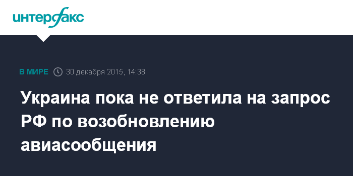 Москва. 30 декабря. INTERFAX.RU - Украина пока не ответила на запрос Минтранса РФ по возобновлению авиационного сообщения с Россией, сообщил журналистам глава ведомства Максим Соколов.