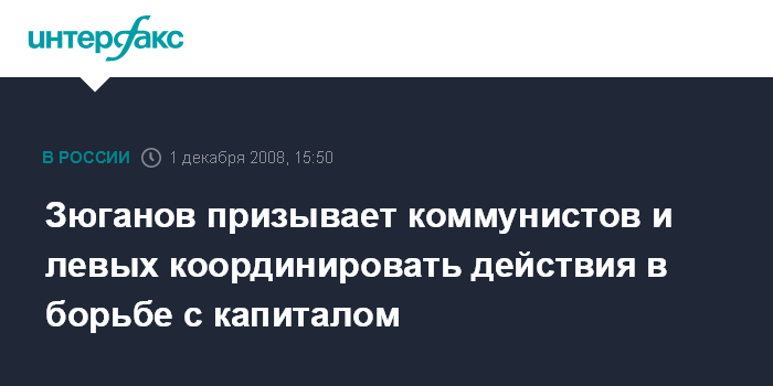 Москва. 1 декабря. INTERFAX.RU - Лидер КПРФ Геннадий Зюганов призвал объединить усилия коммунистических, рабочих и левых партий различных государств в борьбе с современным капитализмом.