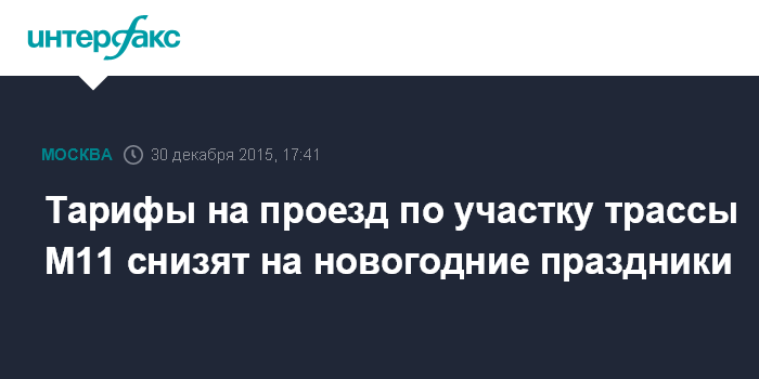 Москва. 30 декабря. INTERFAX.RU - ООО "Северо-Западная концессионная компания" (СЗКК, оператор участка трассы М11 "Москва - Санкт-Петербург" км 15 - км 58) снизит тарифы на проезд по трассе с 1 по 10 января, новая тарифная сетка опубликована на сайте СЗКК.