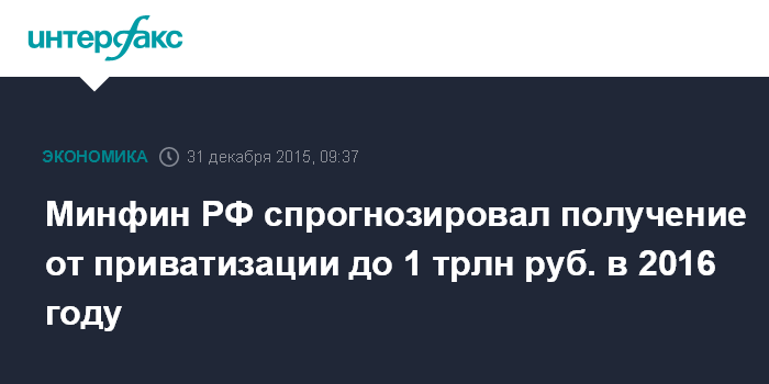 Минфин РФ спрогнозировал получение от приватизации до 1 трлн руб. в 2016 году