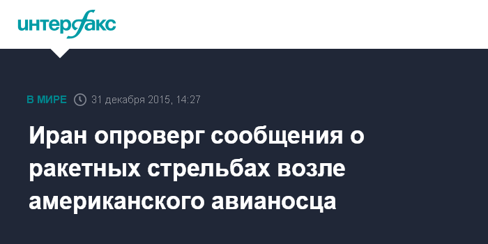 Ранее американские военные заявили, что 26 декабря Иран проводил ракетные стрельбы со своего корабля всего в полутора километрах от кораблей возглавляемой США международной коалиции против запрещенной в России группировки "Исламское государство".