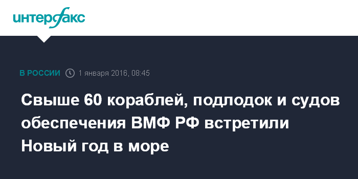 Москва. 1 января. INTERFAX.RU - Экипажи свыше 60 боевых кораблей, подводных лодок и судов обеспечения ВМФ России встретили Новый год в различных районах и климатических зонах Мирового океана, сообщили в пятницу "Интерфаксу" в Управлении пресс-службы и информации Минобороны РФ.