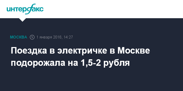 Москва. 1 января. INTERFAX.RU - Постановление городского правительства, которое утверждает новые тарифы на услуги субъектов естественных монополий по железнодорожным перевозкам пассажиров в пригородном сообщении в пределах Москвы, вступило в силу с 1 января.
